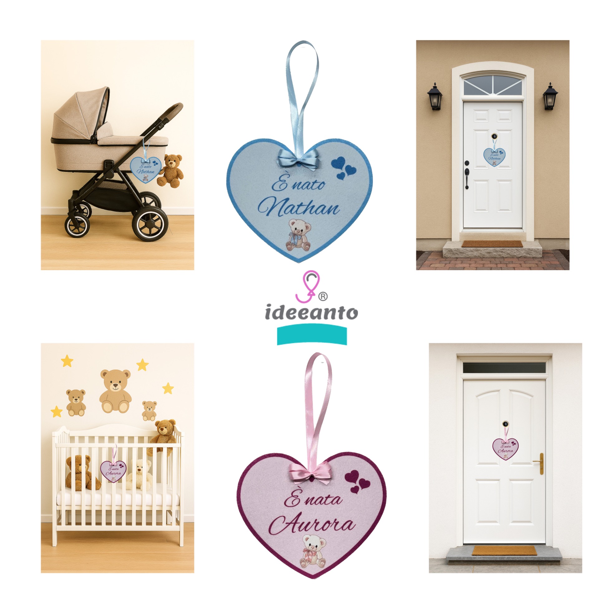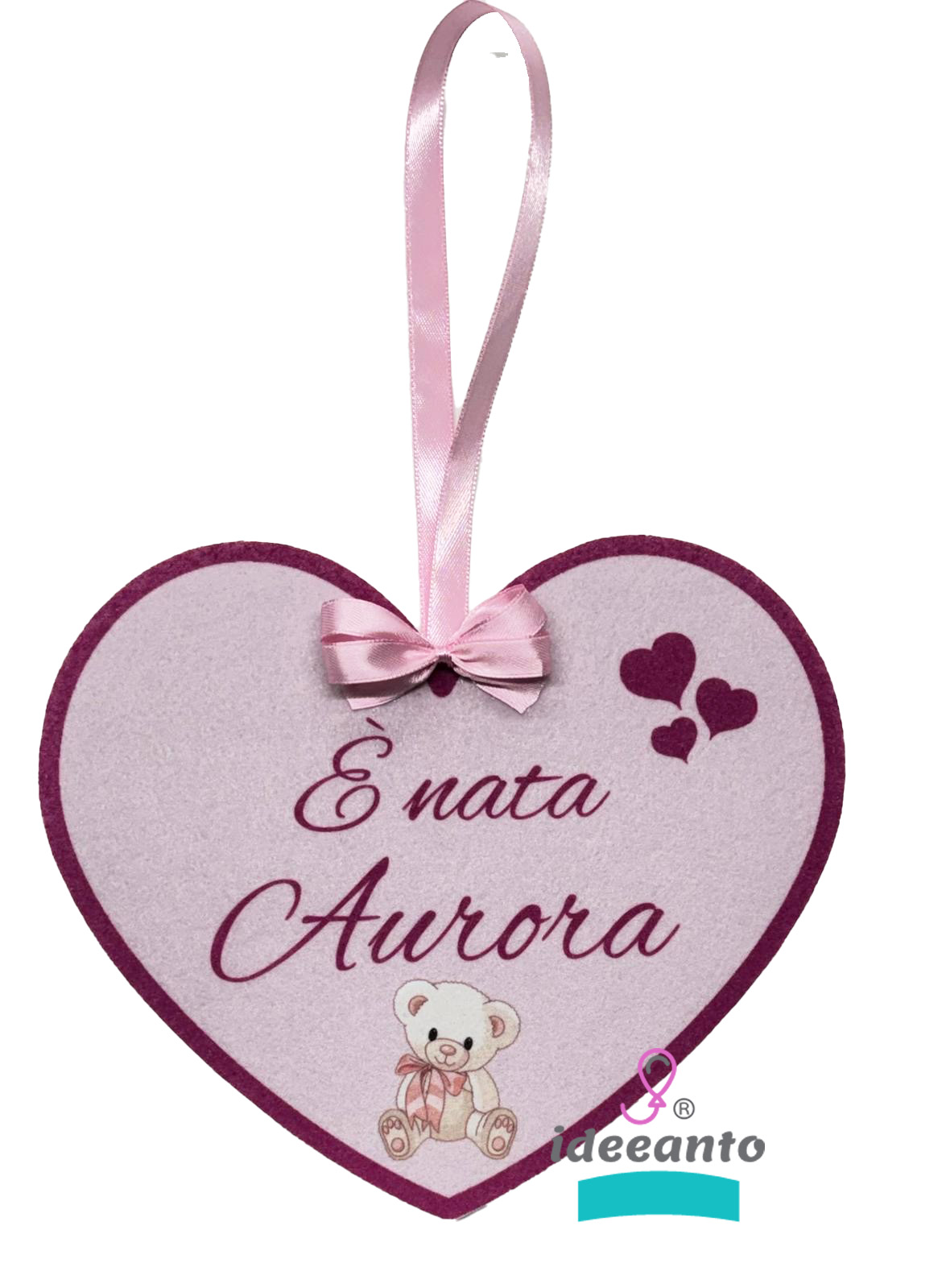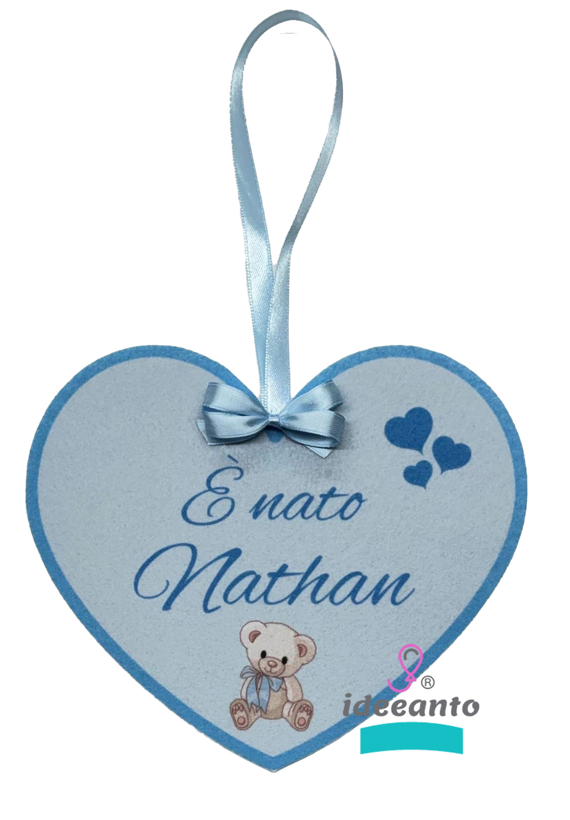 Coccarda nascita personalizzata con il nome del tuo bambino/a, usato anche come fiocco nascita da appendere. Grazioso anche per abbellire la cameretta.