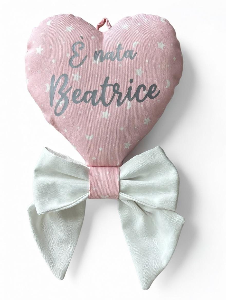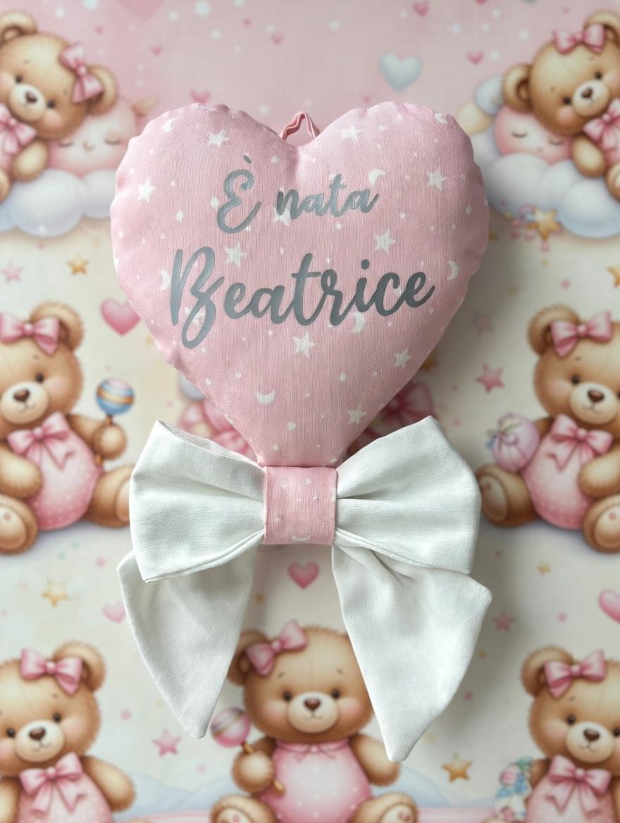 Questo fiocco nascita a forma di cuore personalizzato è un'opera d'arte realizzata a mano in Italia con cura e passione. Potrai scegliere il nome da riportare sul fiocco, rendendolo un regalo unico e speciale per celebrare l'arrivo del vostro bambino. Le dimensioni generose di 22 cm di larghezza e 35 cm di altezza lo rendono un'aggiunta perfetta alla cameretta, un tocco di eleganza e amore che rimarrà impresso nei ricordi di tutta la famiglia. Un oggetto prezioso e duraturo nel tempo, un simbolo dell'affetto che avvolgerà il vostro piccolo tesoro.